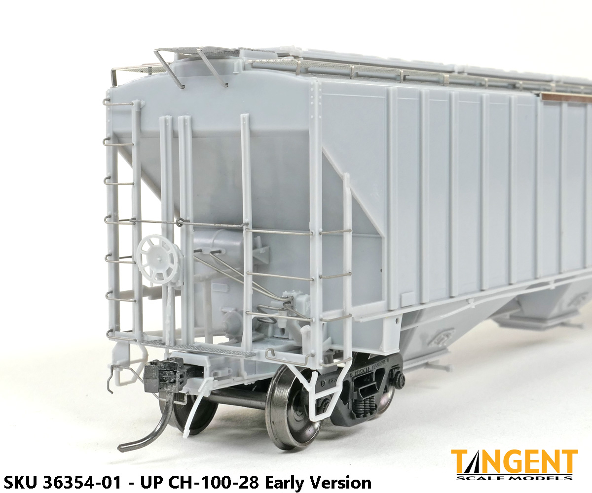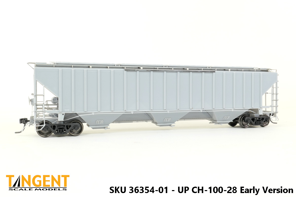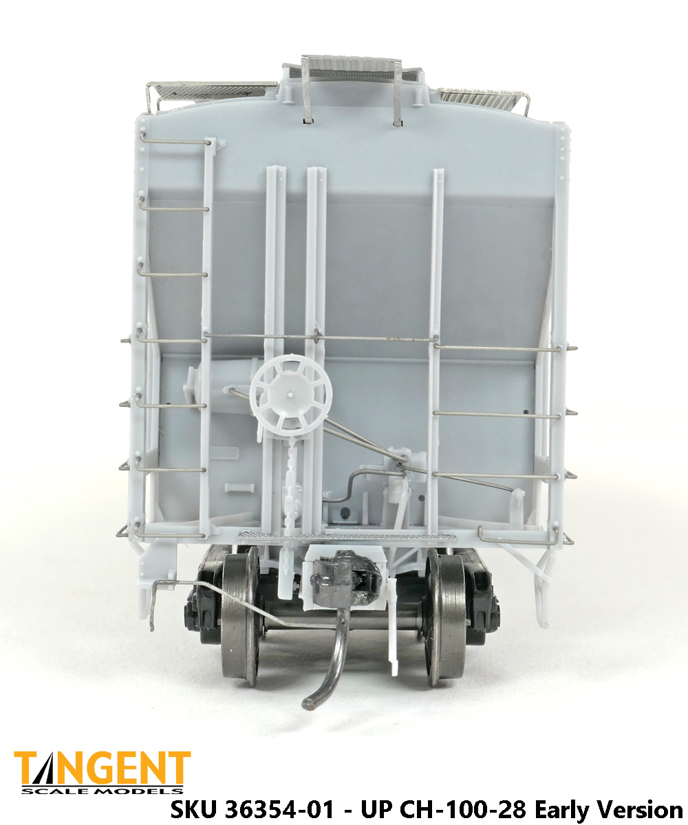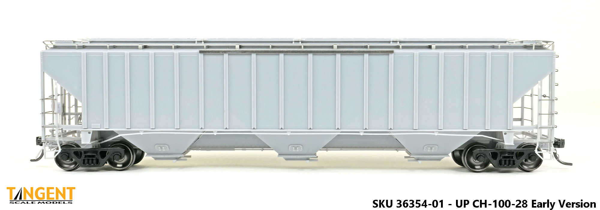 – Undecorated RTR Unpainted UP CH-100-28 Early Version continues our dedication to the modelers. We get it—sometimes you just want to paint your own car. We are modelers too, and we understand the need to continue to offer undecorated products without drama. This car is completely assembled and unpainted! This car has an accurate 1973 Pullman 4750 body with combination open-hole/closed-hole posts. Other details include UP-specific corner steps and bolted outlet bay gate flanges, Landreth roof hatch covers, Gypsum roof walkways/end crossover platforms, Universal power brake and brake wheel, and body-mounted brake hardware. Underneath, the models come equipped with Miner outlet gates and 100-ton Barber S-2 trucks with accurate “Hyatt” rotating caps. Assembled. Unpainted. Ready for finishing.
