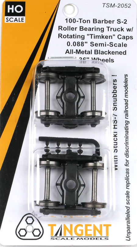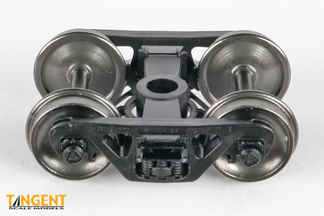 Each pair of trucks includes separately installed brake beams, rotating Timken bearing caps and the distinctive Stucki HS-7 Snubber detail in the center spring package area.