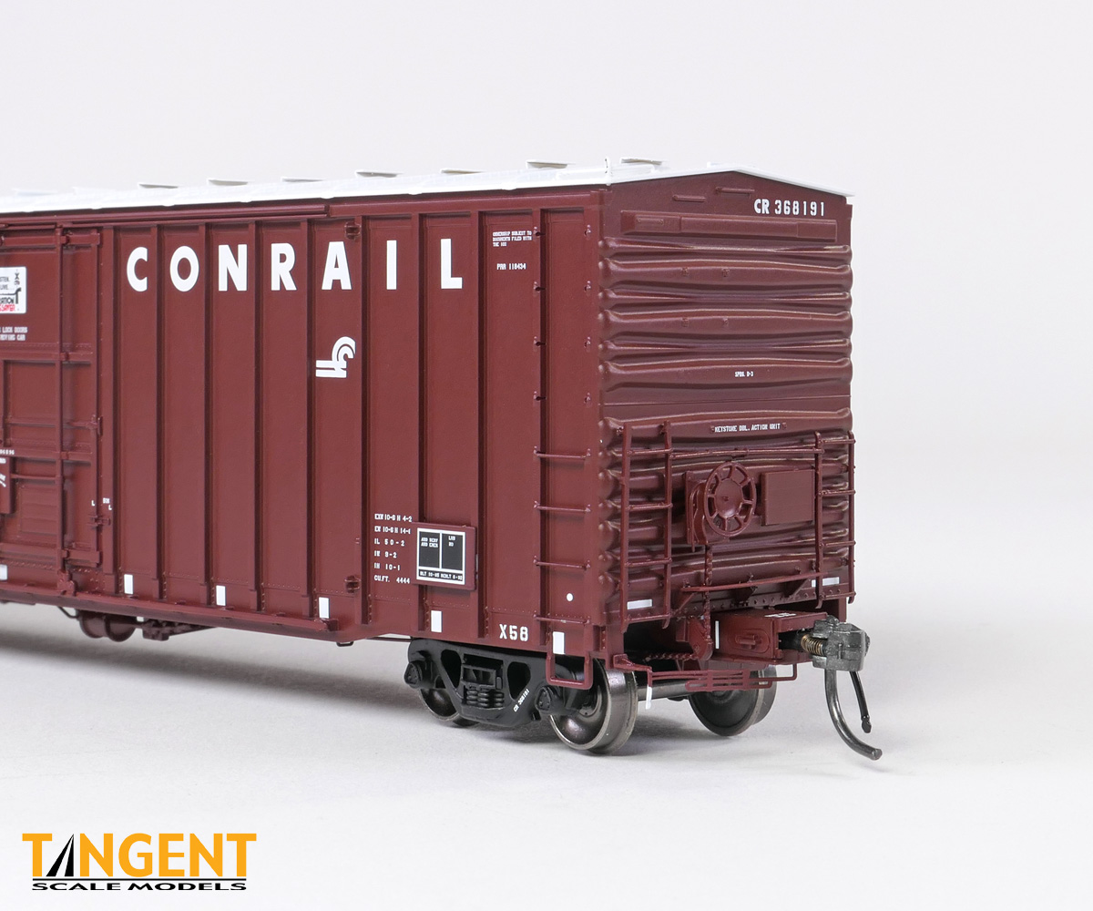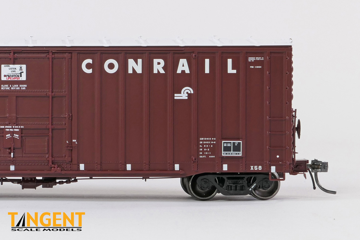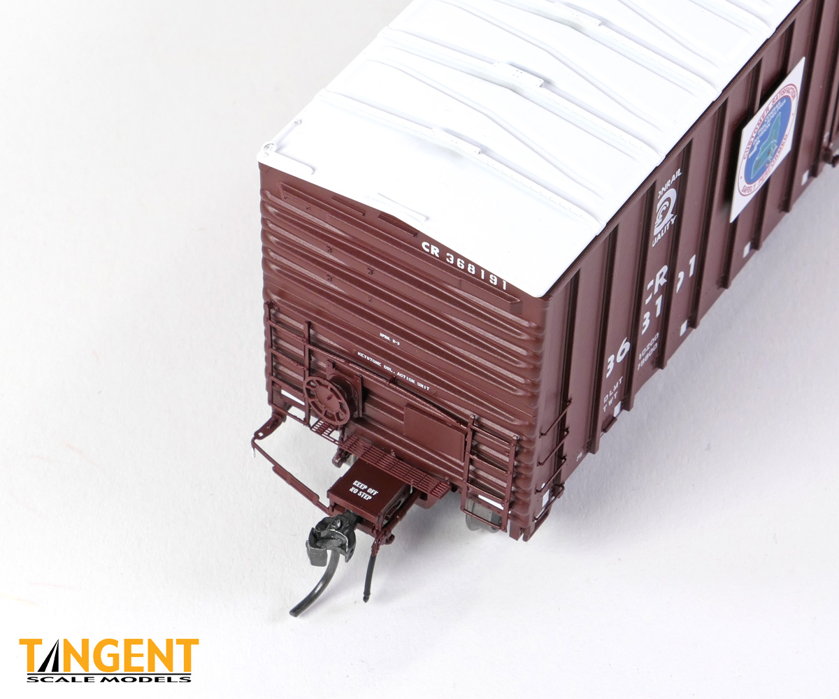 CR “Safety-On-Rails-Theater” 1992+” replicates a one-of-a-kind CR paint job. With a logo panel applied by CR’s Philadelphia Division at Pavonia Yard (Camden, NJ), this box car made its debut in August of 1992. The paint scheme celebrates the Philadelphia Division’s dedication to rail and grade crossing safety. The prototype car included an interior outfitted with instructional materials for safety presentations. The HO model focuses on the outside, with an accurate paint job for its initial debut, including a carefully reproduced and exact Conrail Philadelphia logo panel and Operation Lifesaver logos on the doors. The roof has been painted white on this model, matching the distinctive prototype. The model features a Keystone underframe and lowered brake wheel and safety appliances.