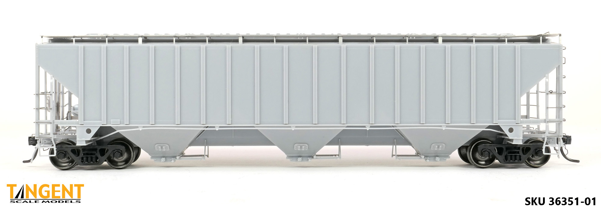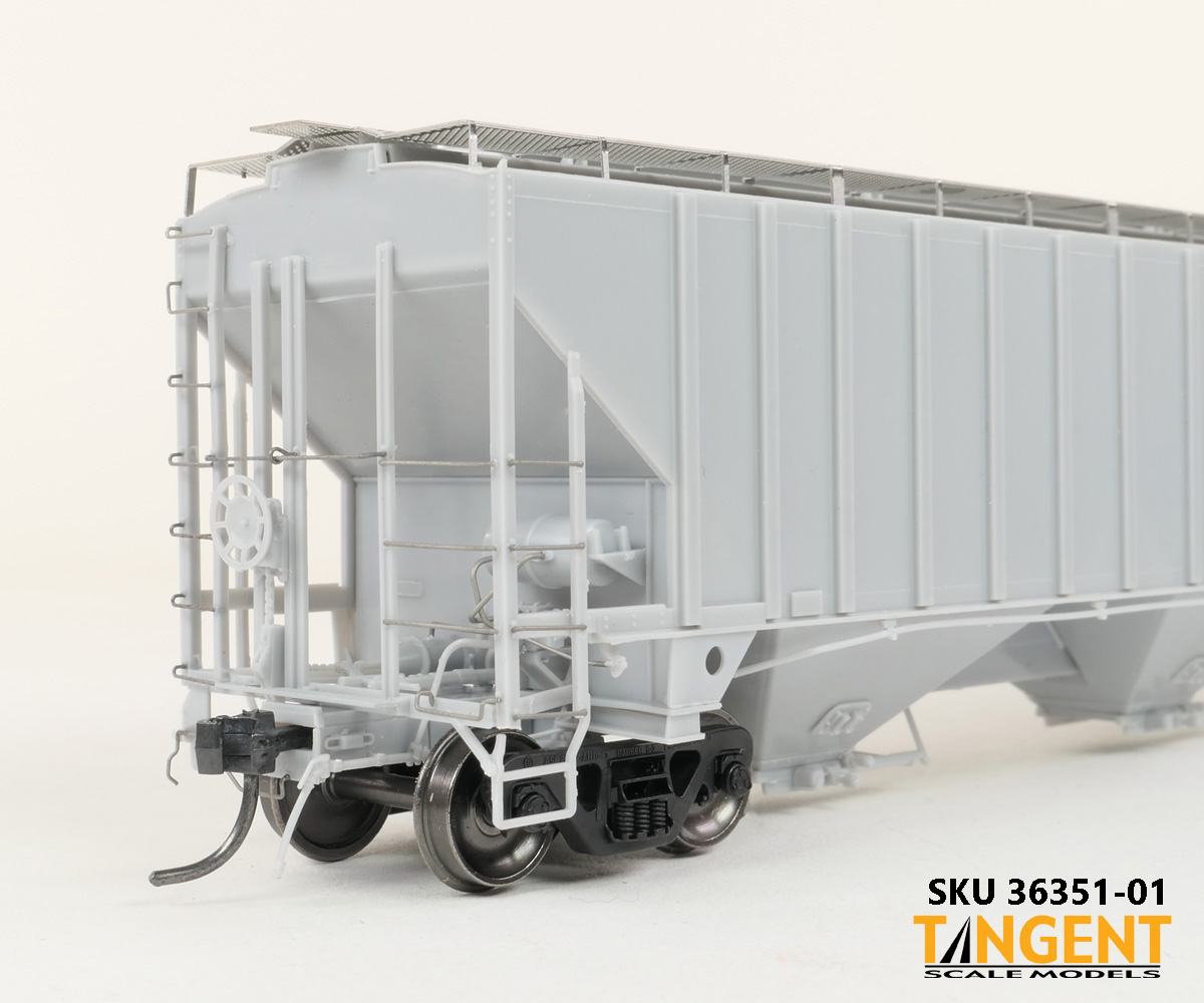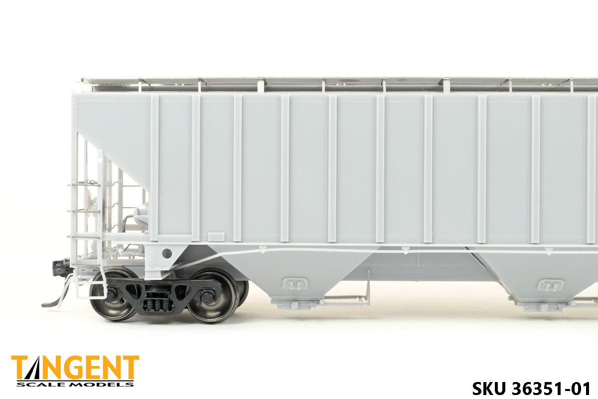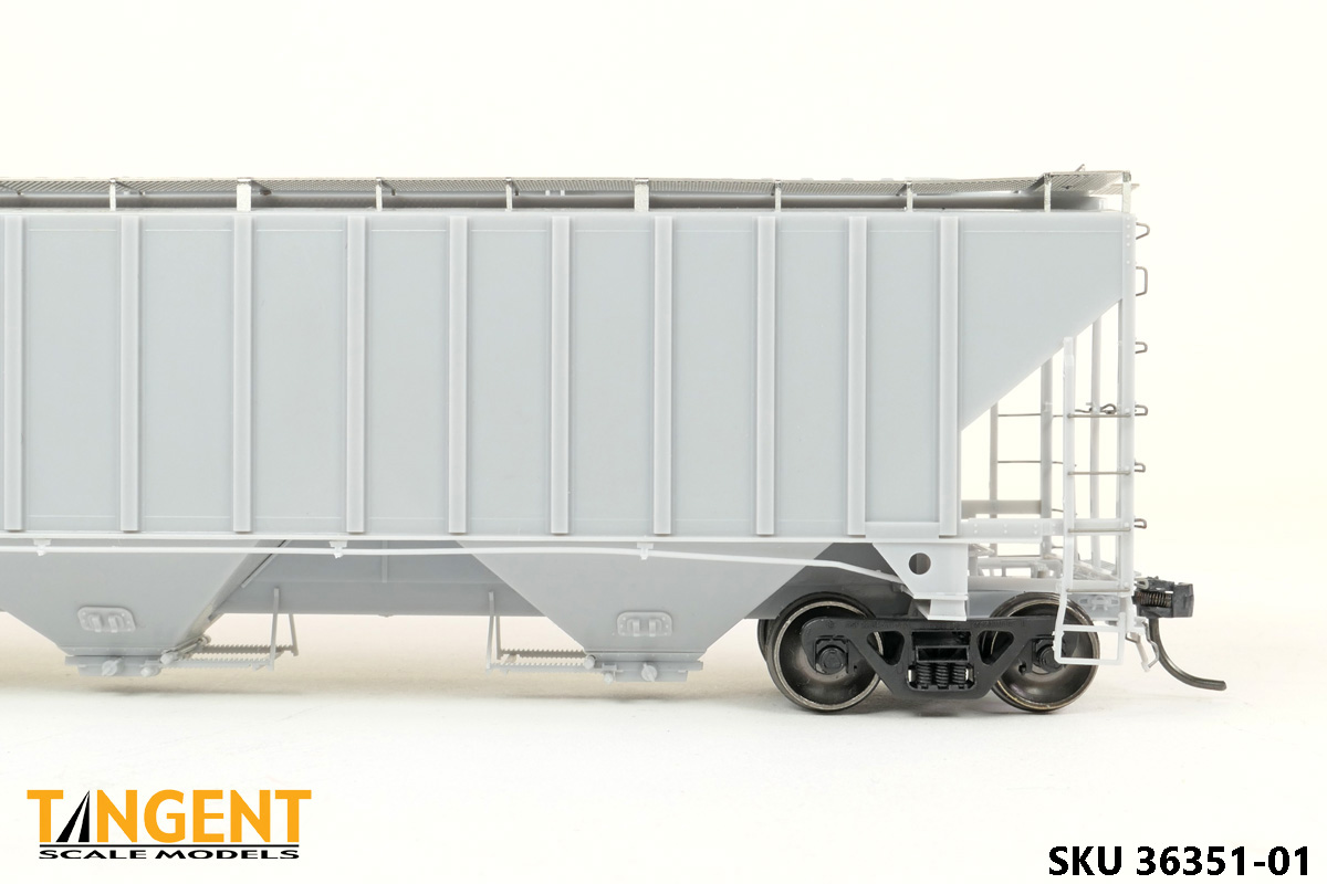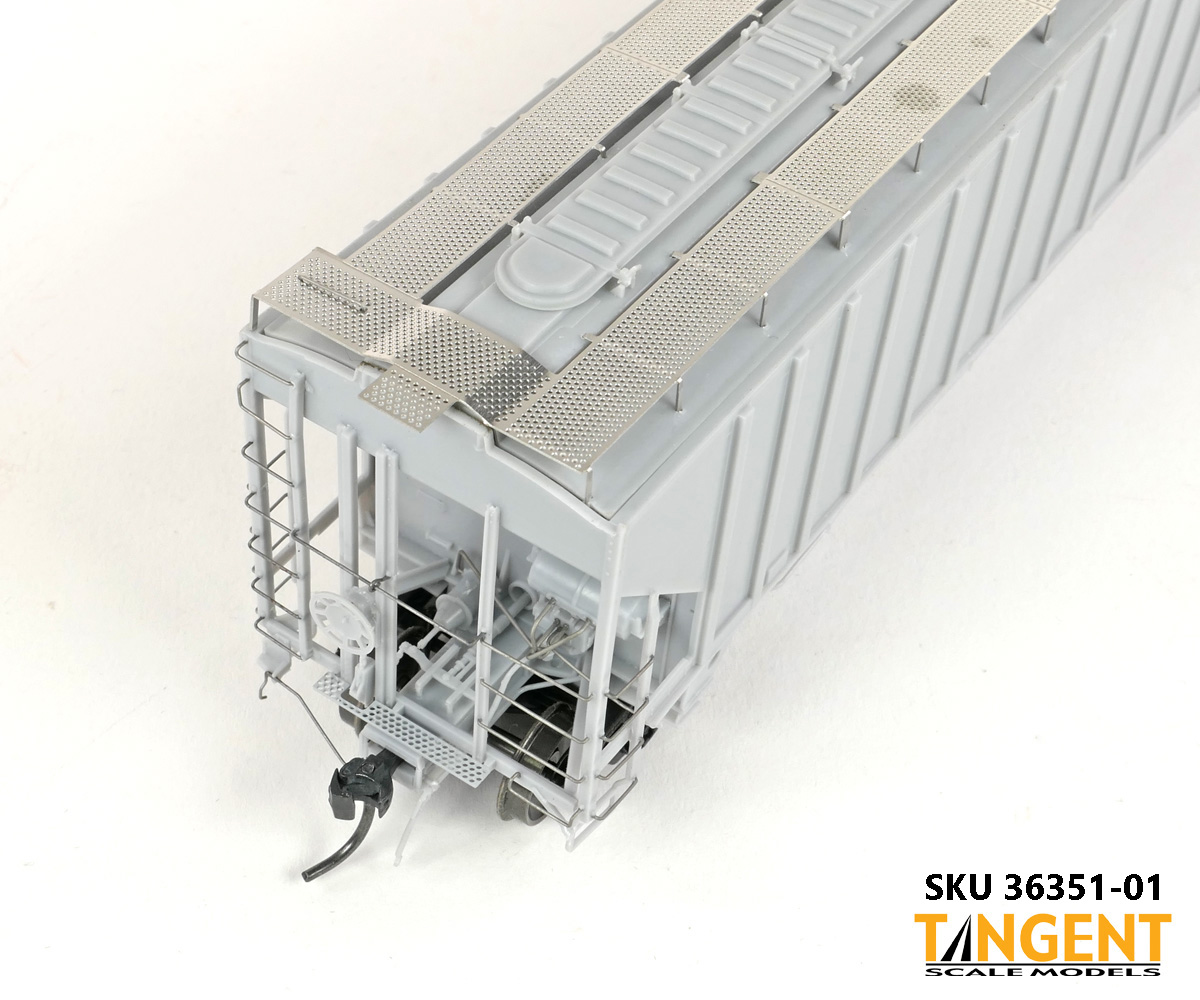 – Undecorated RTR Unpainted CNW 1981 Version continues our dedication to the modelers. We get it – sometimes you just want to paint your own car. We are modelers too, and we understand the need to continue to offer undecorated products without drama. This car is completely assembled and unpainted! This car has an accurate 1981 Pullman 4750 body with C&NW details, including “closed hole” side posts, thick sill protrusion over the bolsters and distinctive wider jacking tabs with vertical extensions above the trucks. It also includes center tube brake linkage, a side-mounted train air line and Miner “Selflok” outlet gates. The model rides on Tangent’s unmatched 100-Ton Barber S-2 Roller Bearing Trucks with Stucki HS-7 Snubbers and rotating “Brenco 3” caps and 36” all-metal wheels. Yes, genuine Kadee® scale couplers are installed. This model is ready for painting and lettering