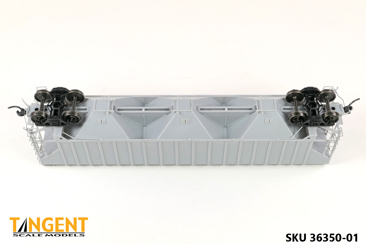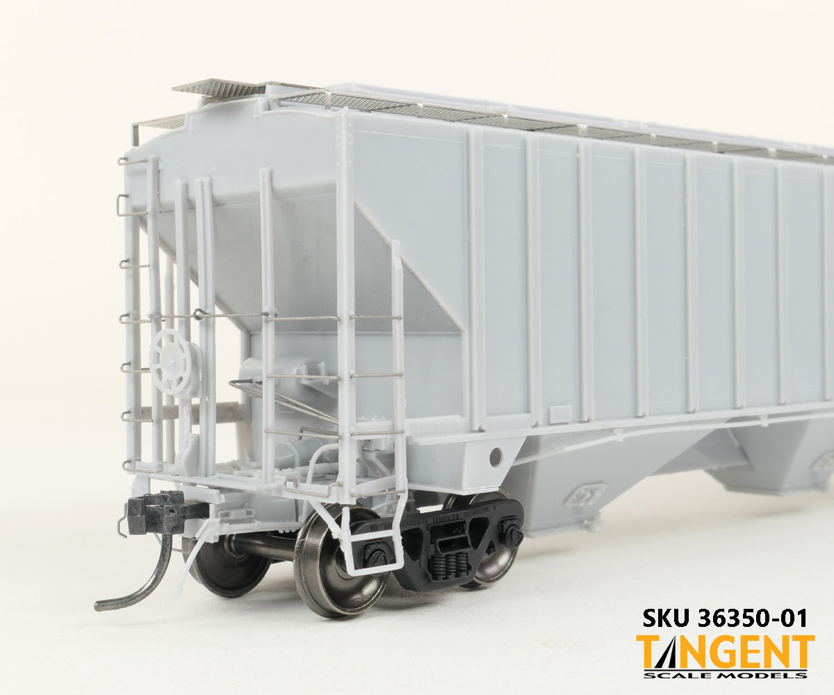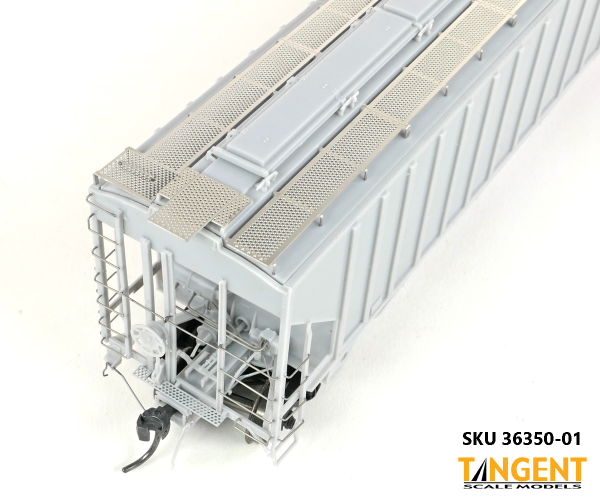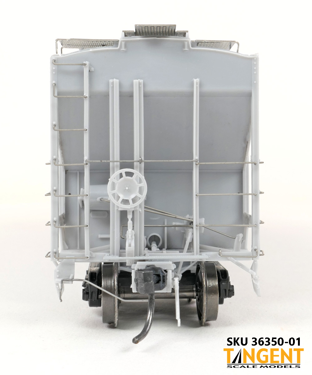 – Undecorated RTR Unpainted PLCX 1980 Version continues our dedication to the modelers. We get it – sometimes you just want to paint your own car. We are modelers too, and we understand the need to continue to offer undecorated products without drama. This car is completely assembled and unpainted! This car has an accurate 1980 Pullman 4750 body, including “open hole” side posts, thick sill protrusion over the bolsters and distinctive wider jacking tabs. It also includes center tube brake linkage, a side-mounted train air line and Miner “Selflok” outlet gates. The model rides on Tangent’s unmatched 100-Ton Barber S-2 Roller Bearing Trucks with rotating “Timken” caps and 36” all-metal wheels. Yes, genuine Kadee® scale couplers are installed. This model is ready for painting and lettering